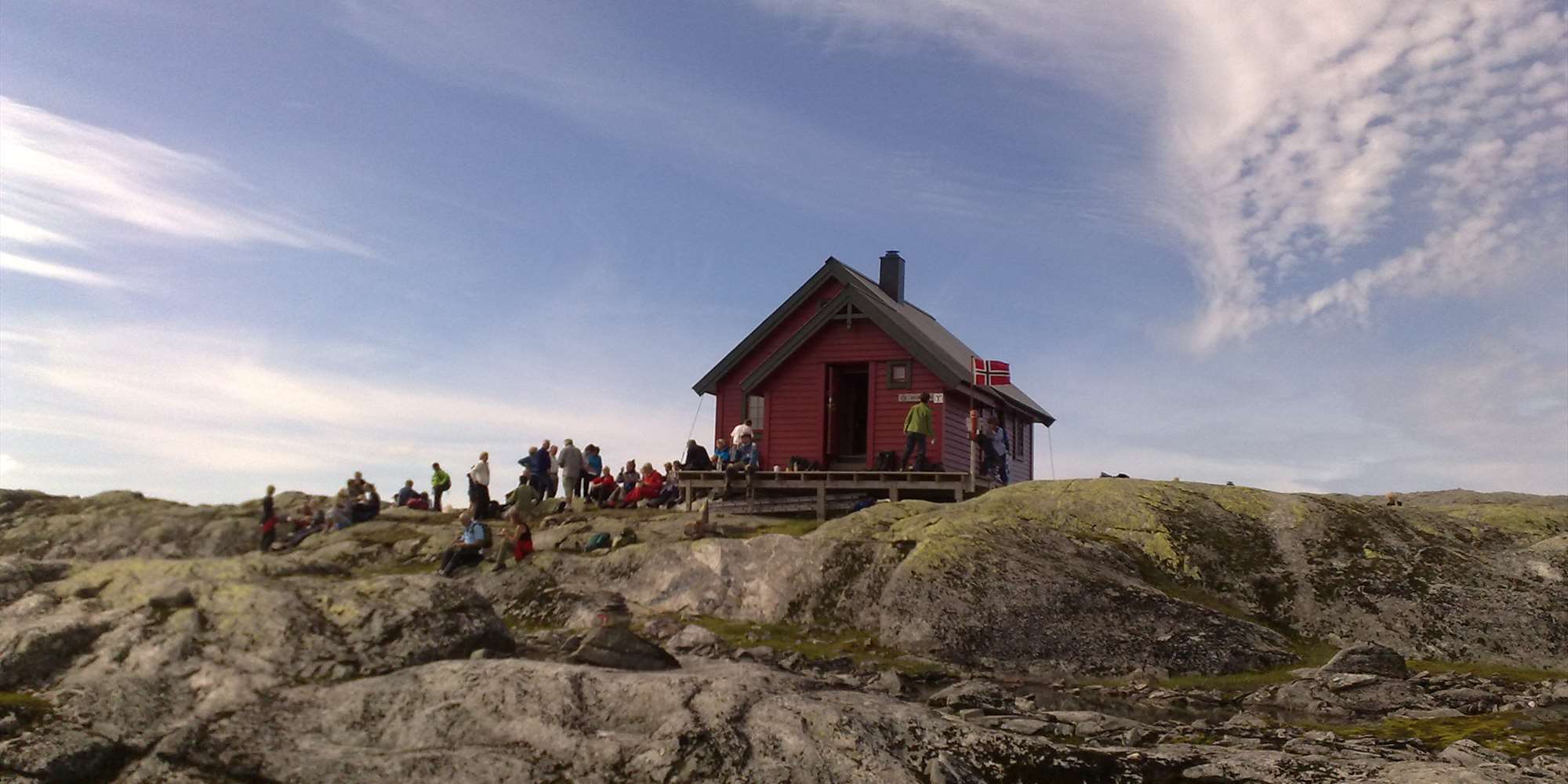 The trail starts from the main road 569 at the Kleivane crossroad (see map), and is an historic route that was used to bring the cattle and sheep up to the grazing fields in the mountain. The hike to Nedstavatnet is steep, but suitable for most people with a normal fitness level, also for children from 5–6 years of age. As the trail flattens, the blue marked side trip to the viewpoint by Nedstavatnet is heading left, and the red marked route to Skavlabu continues straight ahead.