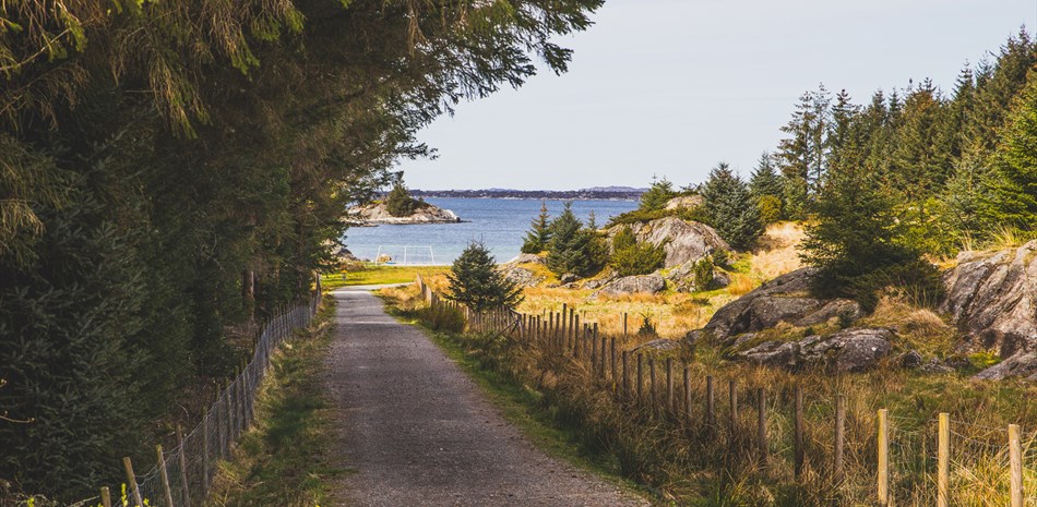 Follow E39 north to Nordhordlandsbrua and on towards Knarvik. Follow RV 57 from Knarvik towards Lindås, and continue past Statoil Mongstad and Kilstraumen, towards Austrheim.